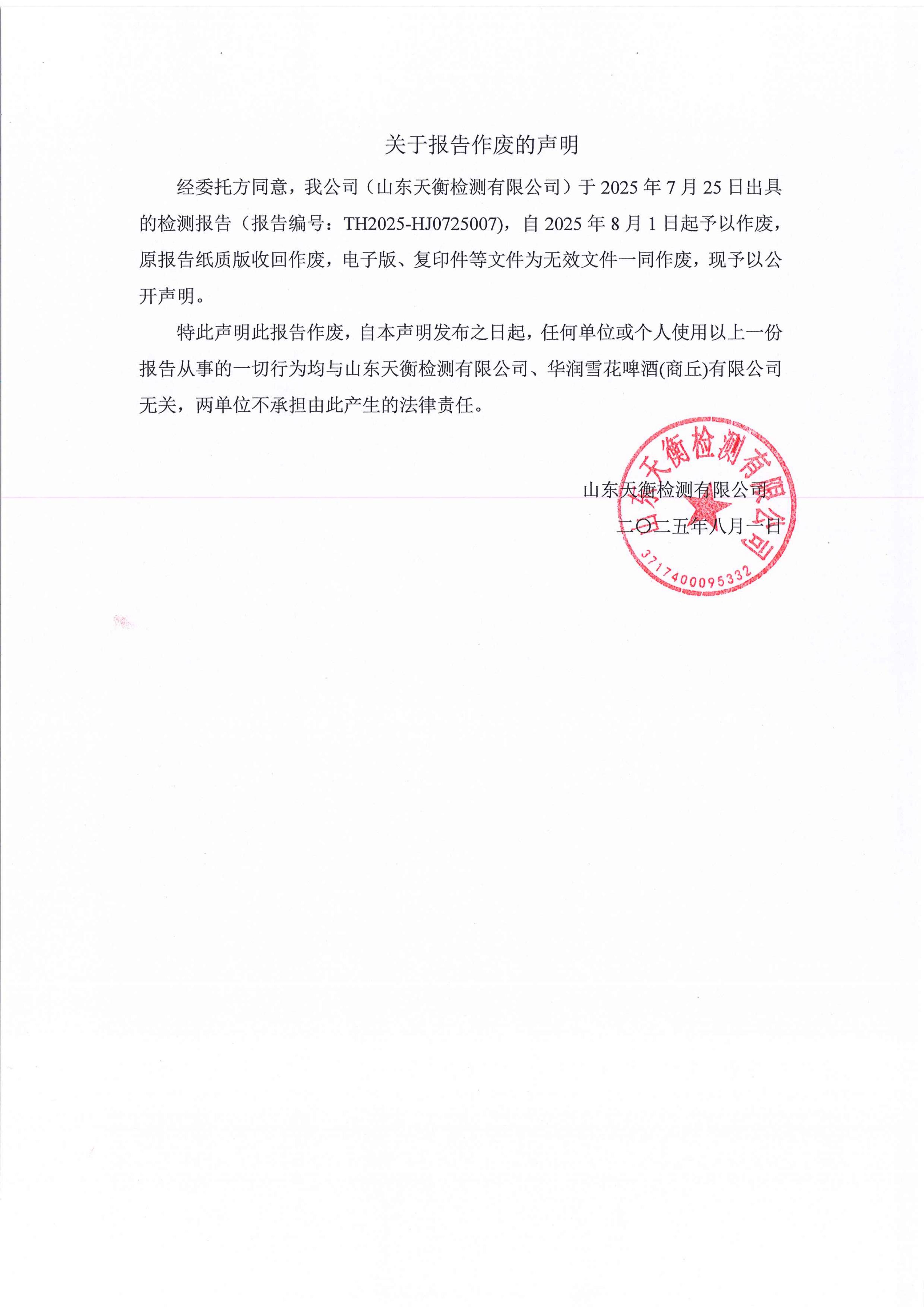 关于报告作废的声明